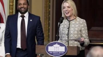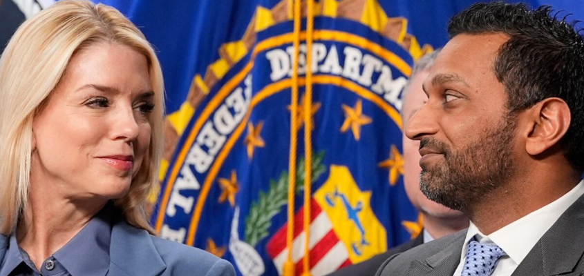 Attorney General Pam Bondi and FBI Director Kash Patel appear at a news conference at the Justice Department on Dec. 4 in Washington. (Alex Brandon / Associated Press)