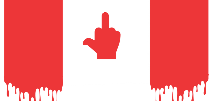 Canadian flag with the center emblem as a middle finger
